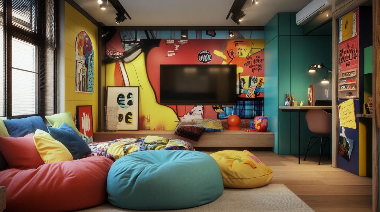 Il est crucial de comprendre que toutes les couleurs ne se valent pas en termes d’impact sur le bien-être et la qualité de vie de votre adolescent. Les couleurs vives comme le rouge, l’orange ou le fuchsia doivent être évitées sur tous les murs car elles peuvent nuire à la qualité du sommeil et générer une stimulation excessive. Ces teintes énergiques peuvent toutefois être utilisées par petites touches ou sur des éléments de décoration pour apporter du dynamisme sans compromettre le repos. La séparation des espaces avec des couleurs adaptées représente une stratégie judicieuse : privilégiez les couleurs froides dans la zone de repos pour favoriser la détente, et réservez les teintes plus vives pour l’espace d’activité ou de travail où elles stimuleront l’énergie et la concentration.
