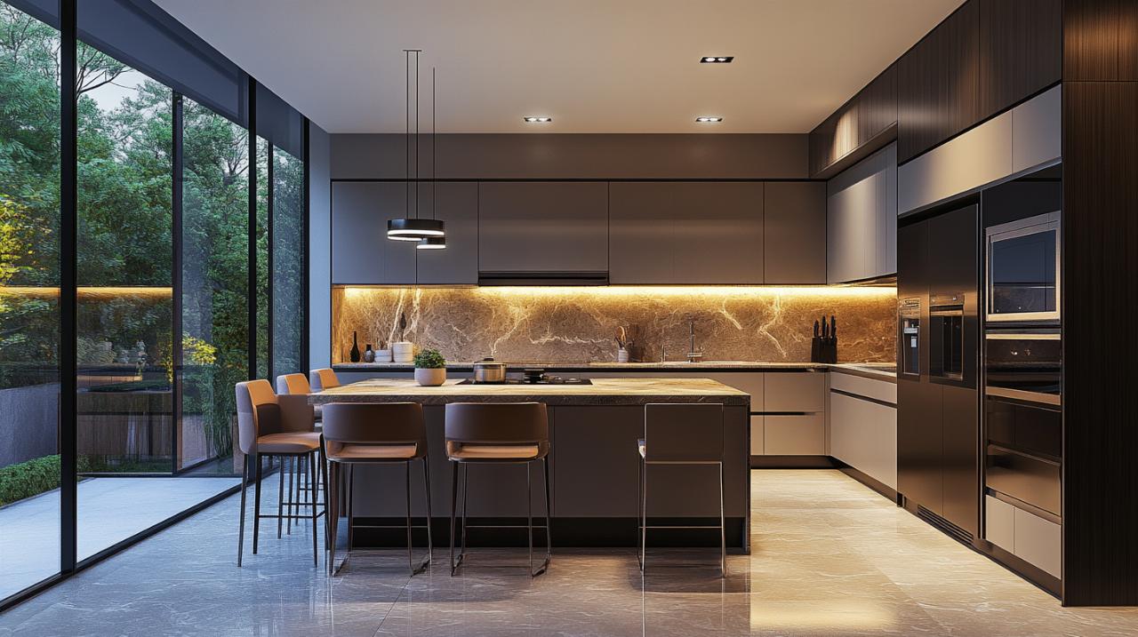 Sublimer votre cuisine carrée avec l'éclairage et un coin repas fonctionnel