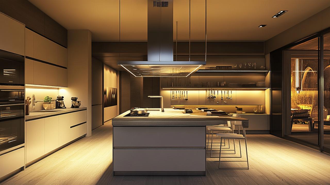 L'éclairage joue un rôle déterminant dans la perception et l'utilisation d'une cuisine carrée. Une stratégie lumineuse bien pensée permet d'agrandir visuellement l'espace tout en créant une atmosphère accueillante. La combinaison de différentes sources de lumière constitue la clé d'un éclairage réussi. La lumière naturelle doit être exploitée au maximum, en évitant d'obstruer les fenêtres avec des meubles trop hauts. L'éclairage général assure une luminosité de base dans l'ensemble de la pièce, tandis que les spots directionnels installés sous les meubles hauts illuminent efficacement le plan de travail. Cette multiplication de petits éclairages de confort crée une ambiance modulable selon les moments de la journée et les activités. Une suspension centrale au-dessus de la table à manger ou de l'îlot apporte une touche décorative tout en renforçant l'éclairage fonctionnel. Les spots positionnés au-dessus du plan de travail assurent une visibilité optimale lors de la préparation des repas, réduisant la fatigue visuelle et améliorant la sécurité.